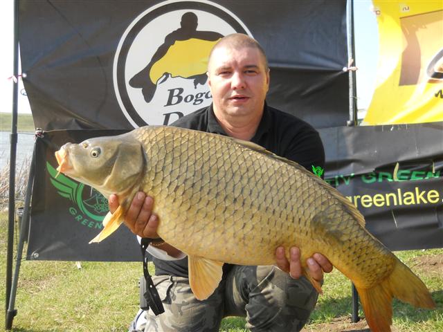 Cald...cald...din ce in ce mai cald...Nici un pic de vant. 9 dimineata si cam scot limba de caldura. Urmeaza in ordine: tigara, cafea, cafea, cafea, bere, bere, cola, aruncat lansete. Se face pranzul si nimic, baietii mai ciupisera unu doi, trei si cam atat. Pranz. Vine Pompi cu novacul prins de Trofim la japca (a se citi boilies) hai executarea la gratar. Toata lumea poze, cu el, subsemnatu zice ca daca pune mana pe el il arunca in apa sa moara inecat, asa ca nu fac poze sa nu las lumea fara potol. Intre timp bere bere, bere, bere....peste ioc. Ratez si eu unu pe la pranz, mai agat vreo doua...Se apuca Dan de saramura, mai apare si niste caras pe langa novacul ala, toate bune si frumoase. Dan mai rupe vreo 2 monturi in aruncare, Pompi mai prinde un peste cu handicap, Iulian doarme la umbra masinii. Vine masa, inainte de asta festivitatea de premiere. Iau foile de la madam Pompieru` (alea de arbitraj, nu alea din cartea de Sandra Brown pe care o citeai si cu care ai incercat sa imi corupi nevasta), vaz acolo..."Stand Pompieru...80 de kile...."..zice mintea mea in gandu` ei...L-o fi cantarit pe Mircica azi noapte cand sforaia ca un tractor in panta...nuuu...ala era totalul prins de noi toti....Iulica avea si el vreo 26 de kile, dar si cel mai mare peste, asa ca a facut flotari imbracat extrem de provocator in capot si cu basma pe cap. Tigaia merge la Marius, care vrand nevrand a facut poze cu ditamai medalia pe piept, noi am aplaudat, si am trecut repede la saramura lui Dan. Bunatate nu alta...Picanta, sarata atat cat trebuie, cu bucati de novac dar si carasi, ardei iute, ardei gras, ceapa...tot ce trebuie (Traiesti un biliard de ani si sa iti pastrezi obiceiu` Dane!).. Lingem repede si cratita si gratar si rezervele de apa, si ne intrebam sfiosi...daca la intrare a fost asa picanta, cum o fi la iesire:). Deci..cu burtile pline, hopa sus in masina si p`aci mi-a fost drumu`.